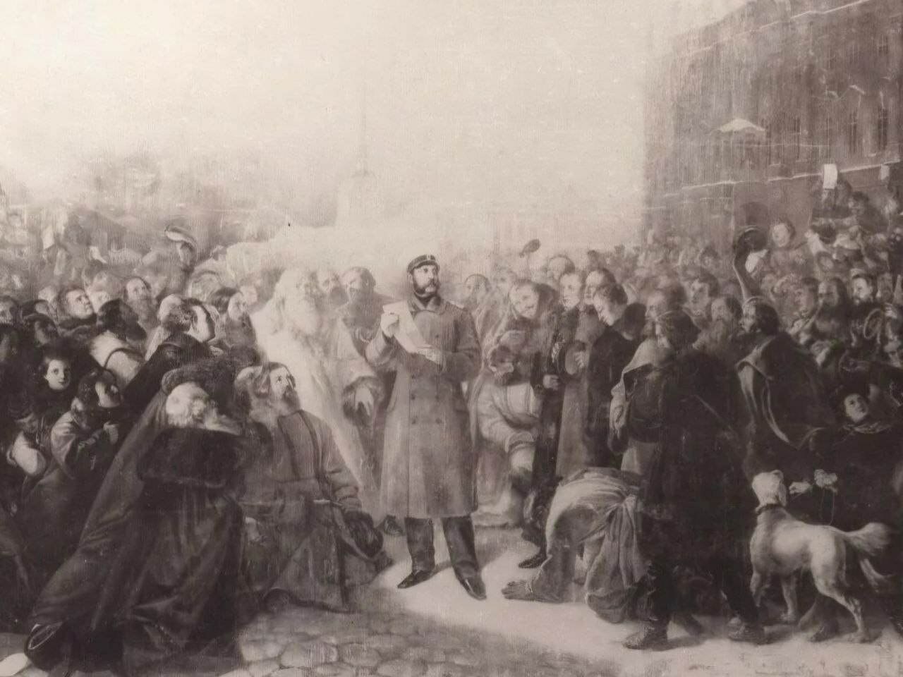 17 марта 1861 года в Прощеное воскресенье по всем российским церквям был обнародован манифест «О всемилостивейшем даровании крепостным людям прав состояния свободных сельских обывателей».О необходимости освобождения крестьян говорили ещё в XVIII веке в узких кругах российского общества. Непосредственная подготовка преобразований по улучшению положения крестьянства велась с 1857 года.Александр II подписал Манифест 3 марта (19 февраля — по старому стилю) 1861 года. Крестьяне получили личную свободу, им были присвоены гражданские права – свобода вступления в брак, самостоятельное заключение договоров и ведение судебных дел, приобретение недвижимого имущества, но земля оставалась собственностью помещиков. За отводимые наделы крестьяне на положении «временнообязанных» несли в пользу помещиков повинности, которые мало отличались от прежних. Наделение крестьян землёй и порядок несения повинностей определялись по соглашению с помещиками.Обнародованный документ вызвал неоднозначную реакцию. Восторг в обществе сменился разочарованием, которое в ряде случаев выливалось в крестьянские волнения и бунты. Крестьяне ожидали полной свободы, а переходное состояние «временнообязанных» восприняли с негодованием. Реформаторы предполагали, что подобные преобразования, меняющие фундаментальные основы российского общества, не могут пройти легко:«Обращая внимание на неизбежные трудности предприемлемого преобразования, мы первое всего возлагаем упование на всеблагое провидение Божие, покровительствующее России» (Манифест).Однако значимость свершившейся реформы была беспрецедентна. Историк В.О. Ключевский считал:«В продолжение столетий, предшествовавших 19 февраля 1861 года, у нас не было более важного акта; пройдут века, и не будет акта, столь важного, который бы до такой степени определил собою направление самых разнообразных сфер нашей жизни».В честь проведённой реформы император Александр II был назван «Освободителем». Этим актом завершалась эпоха закрепощения массы людей, открывались перспективы для развития экономики и трансформации общества, начиналась «эпоха великих реформ», зарождалось гражданское общество.