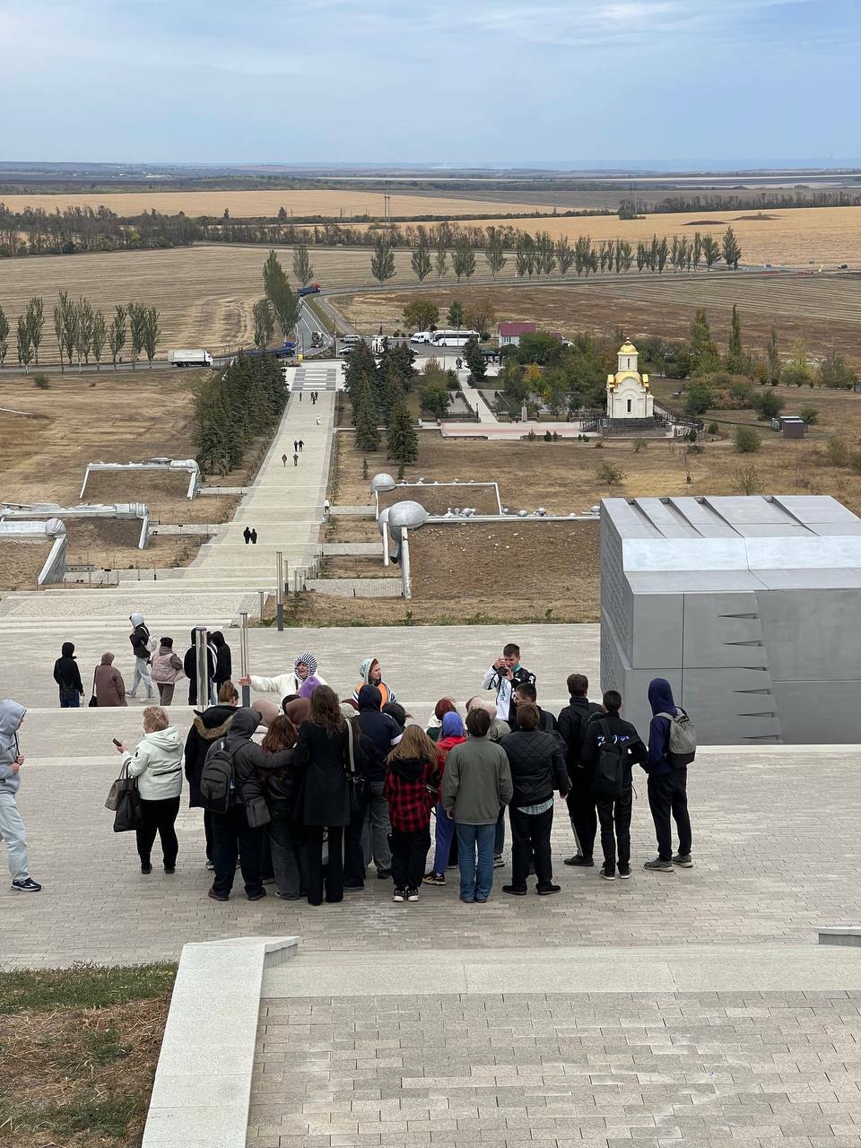 27 сентября 2027 года студенты ГБПОУ "Донецкий техникум архитектуры и строительных технологий" и участники проекта "Старшее поколение" при поддержке РОО "Русский центр" отправились в экскурсионный тур по маршруту Военно-исторический музей Великой Отечественной войны - Мемориальный комплекс "Саур-Могила".