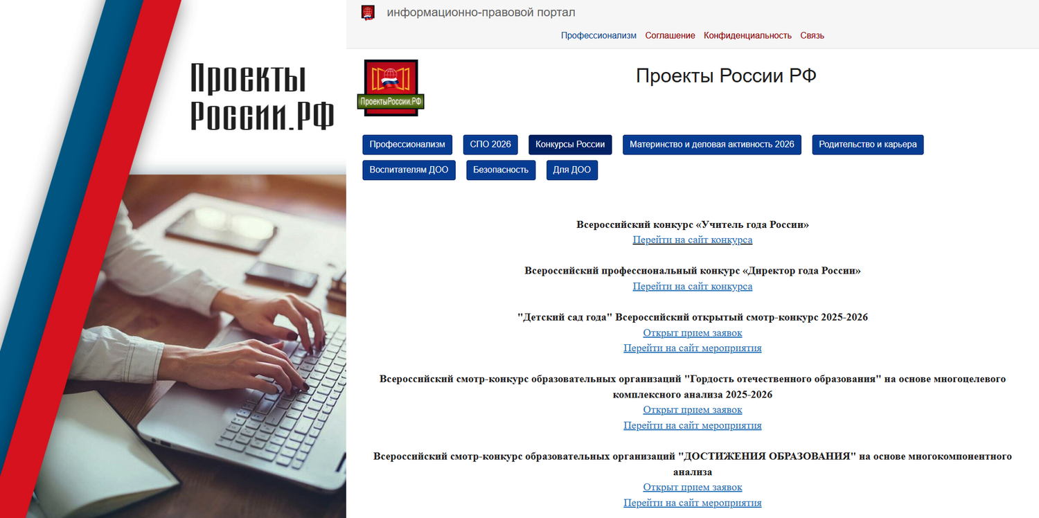 На информационно-справочном ресурсе «Проекты России РФ»(https://ПроектыРоссии.РФ) оперативно освещаются актуальные вопросы дляродителей студентов колледжей и техникумов, которые желают предоставитьсвоим детям дополнительные возможности для успешной профессиональнойсамореализации.