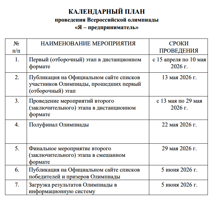Проведение Олимпиады запланировано на апрель – май 2026 года.